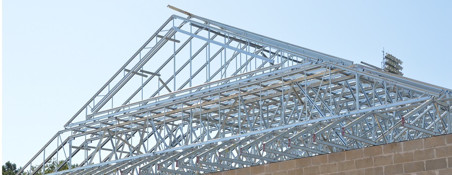 reinforced concrete and light gage steel truss roof system founded on shallow concrete